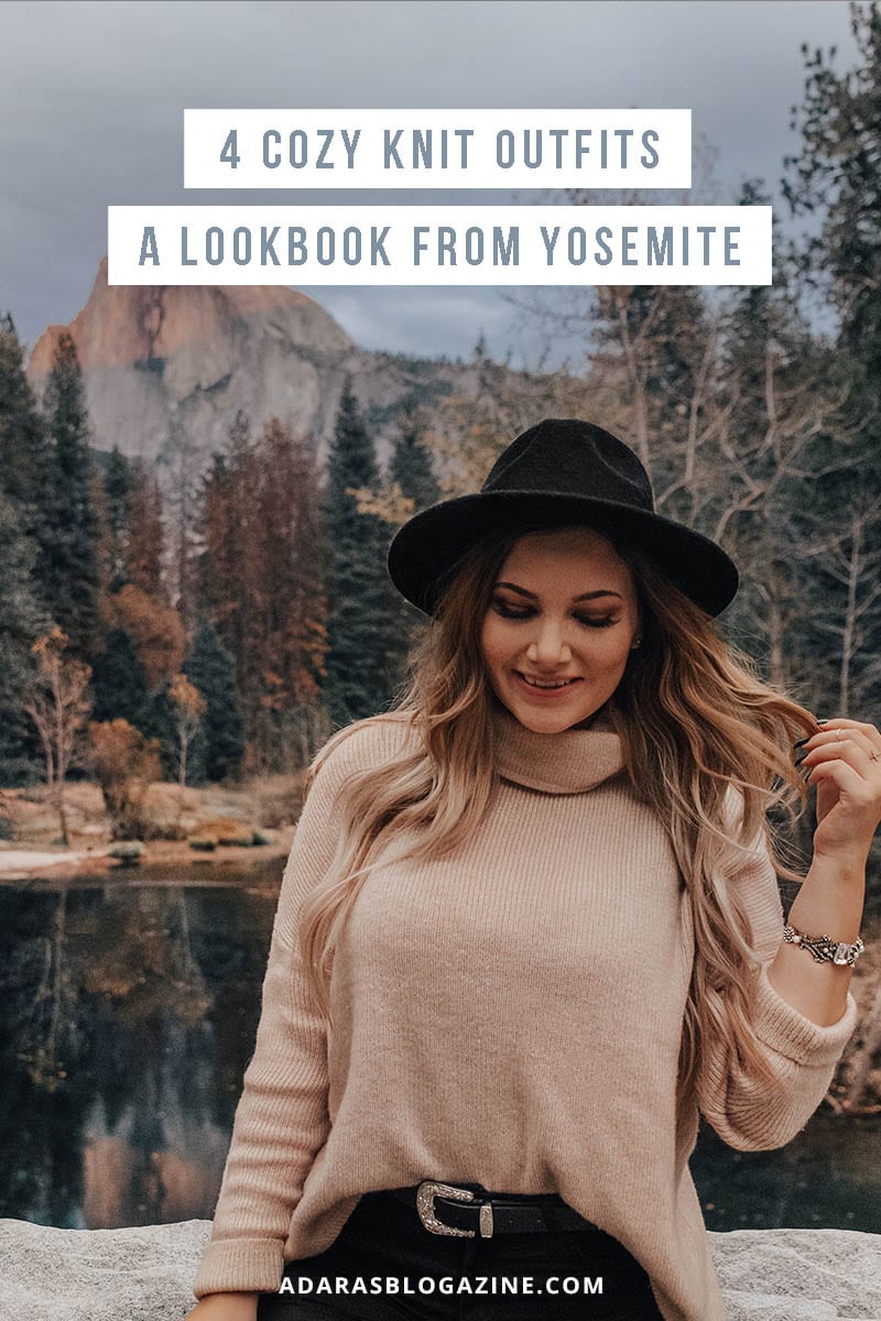 It's sweater weather! Stay warm in a chunky knit, sassy turtleneck or classic cardigan. It all helps you look hot when it's cool out. As inspiration, I've put together four cozy knit outfit ideas from my latest trip to Yosemite National Park in California.